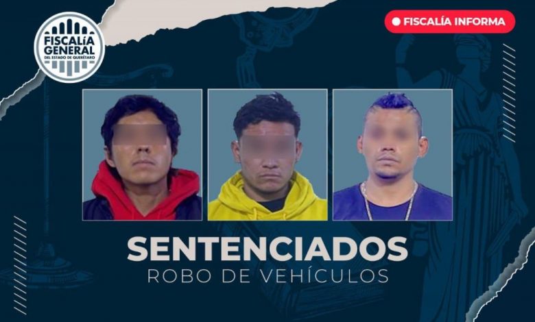 La Fiscalía General del Estado de Querétaro obtuvo sentencia condenatoria contra tres personas por los delitos de robo de vehículo con violencia y cohecho, tras las investigaciones realizadas por personal ministerial, pericial y la Policía de Investigación del Delito.