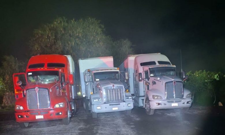 - Se localizaron tres tractocamiones con cajas secas y mangueras aparentemente enlazadas a una toma clandestina de hidrocarburo.