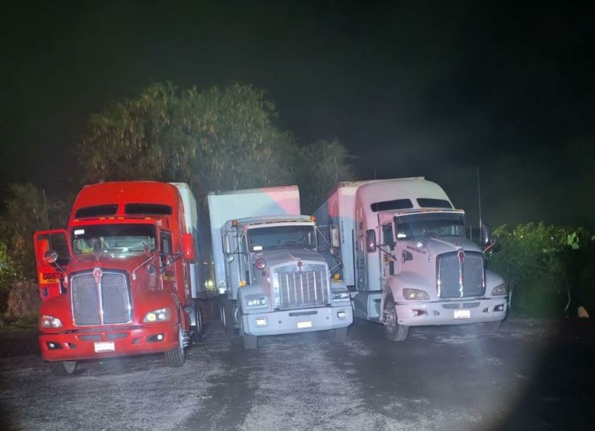 - Se localizaron tres tractocamiones con cajas secas y mangueras aparentemente enlazadas a una toma clandestina de hidrocarburo.