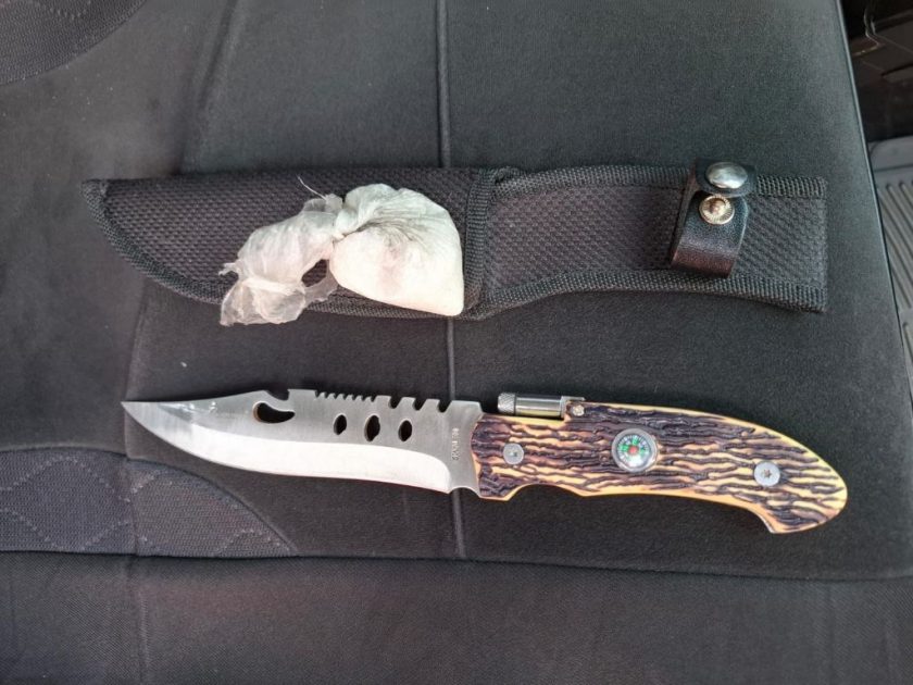 Al marcarles el alto e intentar entrevistarse con ellos, los individuos adoptaron una actitud renuente, por lo que se procedió a realizar una inspección preventiva. A Ricardo «N.», de 29 años, se le aseguró una navaja de aproximadamente 30 centímetros; mientras que a Luis «N.», de 32 años, se le encontró en el pantalón una bolsa con una sustancia granulada transparente, con características similares al narcótico conocido como “cristal”.