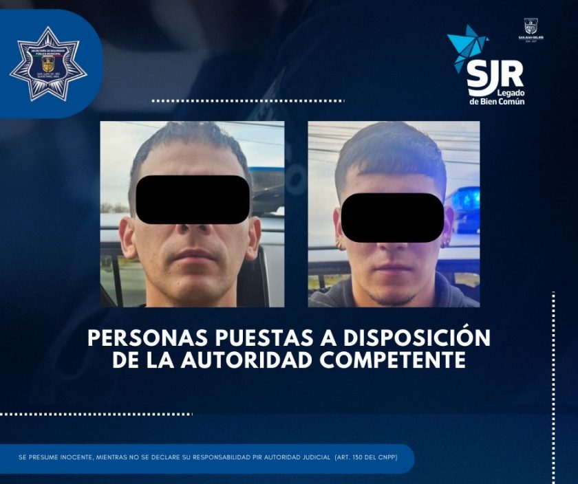 Ante este intento de soborno, los elementos de la SSPM-SJR actuaron con apego a la ley, procediendo con la detención inmediata de ambos sujetos y asegurando 2 mil 500 pesos en efectivo como evidencia.