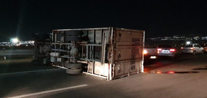 El accidente ocurrió en dirección a 5 de Febrero en una de las curvas más accidentada de esta vialidad, en donde la unidad al ir descendiendo perdio el control ocasionando que volcara.