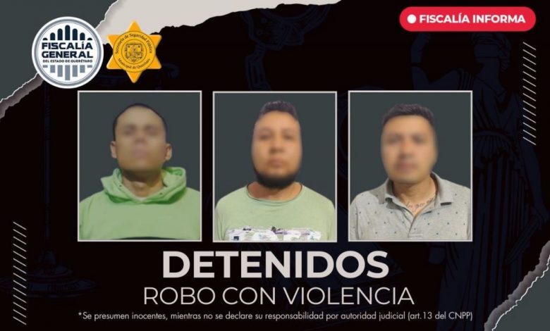 La Fiscalía de Querétaro informa que fueron detenidos “yoyo”, “oso” y “güero” por su probable intervención en el delito de Robo de Vehículo con Violencia, cometido el pasado 22 de noviembre.