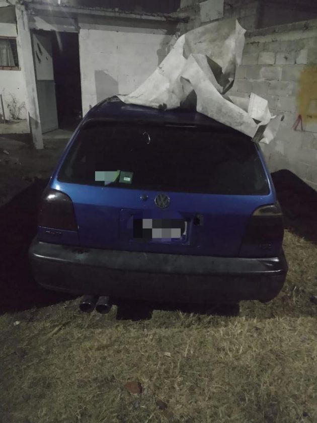 Al llegar a la zona, uniformados localizaron el vehículo con una lona encima, en un domicilio aparentemente abandonado. Con permiso del propietario los elementos ingresaron para proceder con la detención de dos masculinos y una femenina que se encontraban al interior del domicilio; fueron presentados ante la autoridad para determinar su situación jurídica.