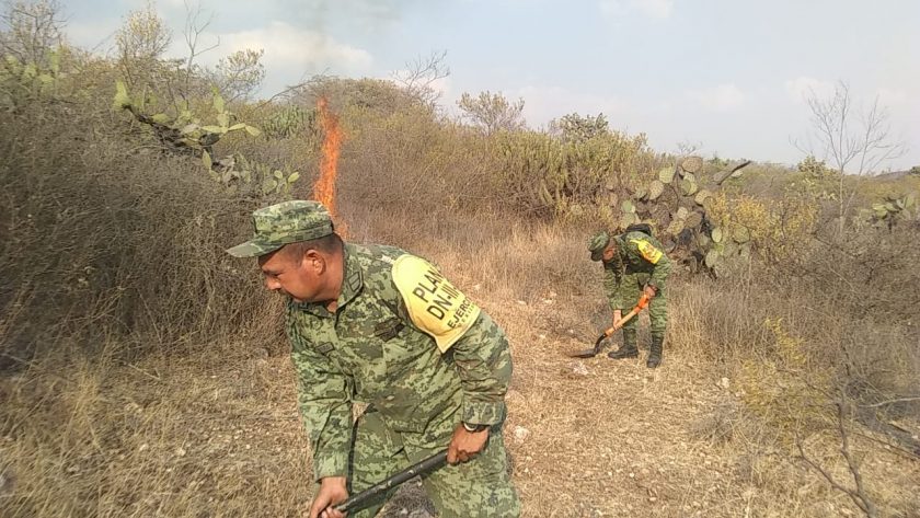 La Secretaría de la Defensa Nacional informó que se activó el Plan DN-III-E, con motivo del incendio forestal que se suscitó en el cerro “La Barranca” en la comunidad Tierra Dura, Municipio de Colón, Qro., personal perteneciente al 4/o. Regimiento Blindado de Reconocimiento, proporcionó apoyo a Protección Civil y Bomberos de los Municipios de Colón, Ezequiel Montes y Querétaro, durante las actividades de la sofocación del incendio.