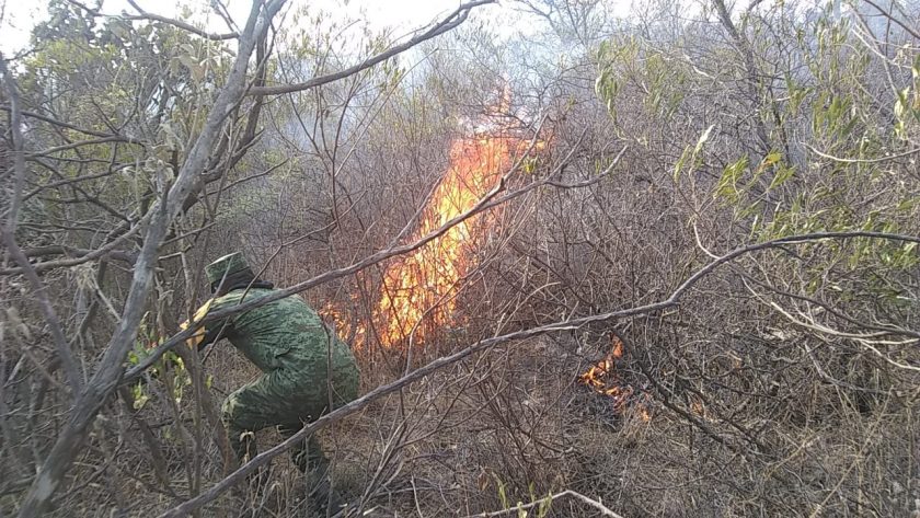 Durante la aplicación; se desplegó un efectivo de 19 elementos de tropa, quienes lograron sofocar el 70% del incendio, quedando como resultado únicamente 80 hectáreas de arbustos y pastizal quemadas, continuando con los sofocación el día de mañana.