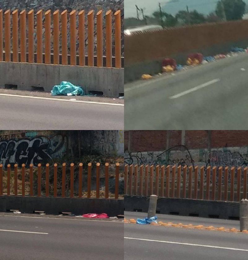 Este mediodía entre el km 22+400 al 22+700 de los carriles centrales de la autopista Puebla – México en dirección a la CDMX, alguien arrojó presuntos “Residuos Patológicos Biológicos Infecciosos” de algún hospital, entre ellos sangre y restos de cirugías.