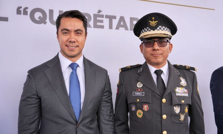 El presidente municipal, Felifer Macías, acompañó al gobernador del estado, Mauricio Kuri González, a la Toma de Posesión y Protesta de Bandera del General Brigadier E.M. Rubén Torres Martínez, nuevo coordinador estatal de la Guardia Nacional en Querétaro.