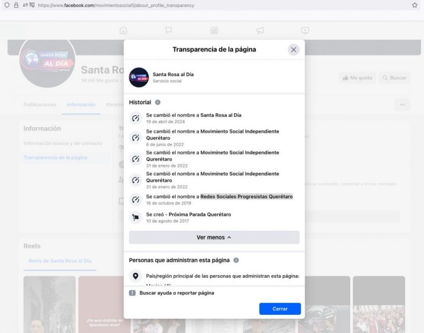 La “Fanpage” de Facebook Santa Rosa al Día fue creada el 10 de agosto de 2017 con el nombre “Próxima Parada Querétaro”.
