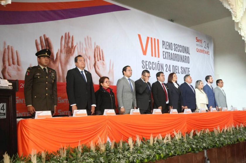 El presidente municipal de Corregidora, Chepe Guerrero, acudió al VIII Pleno Seccional Extraordinario de la Sección 24 del Sindicato Nacional de Trabajadores de la Educación (SNTE), donde reconoció la importancia de las maestras y los maestros para todos los mexicanos. Los calificó como aliados por el impulso que, desde las aulas, dan a las políticas públicas y también destacó su lucha en defensa de la educación.