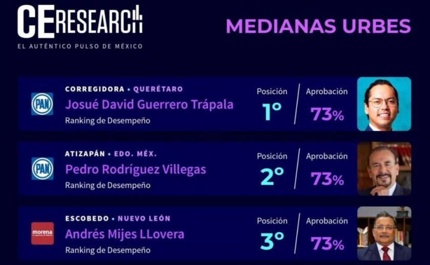 El presidente municipal de Corregidora, Chepe Guerrero Trápala, ocupó el el primer lugar en el Ranking de Desempeño en Medianas Urbes, al alcanzar un 73% de satisfacción ciudadana.