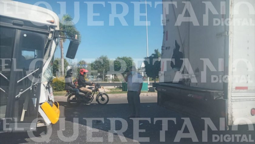 El día de ayer en el municipio de El Marqués, un chofer de la ruta ‘L’ de Qrobús circulaba por Prolongación Constituyes y Eje anillo vial III oriente cuando de repente se distrajo al volante y se impactó contra la caja de un camión que se encontraba detenido.