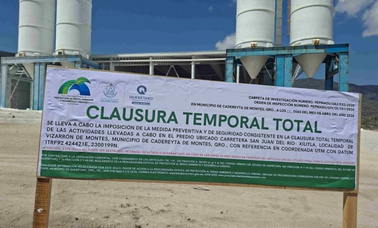Autoridades estatales clausuraron de forma temporal total una planta de trituración y molienda de material pétreo en la localidad de Vizarrón de Montes, en el municipio de Cadereyta, tras denuncias por emisiones de polvo.