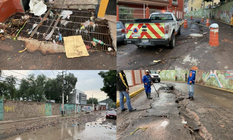 En el municipio de Querétaro se registraron escurrimientos en la colonia Puertas del Sol, Peñuelas y Loma Dorada; además de retorno de drenaje con ingreso de agua en domicilios en la colonia Peñuelas. Los reportes fueron atendidos por personal de la Coordinación Estatal de Protección Civil, Coordinación Municipal de Protección Civil, Delegación Epigmenio González y Servicios Públicos Municipales de Querétaro.