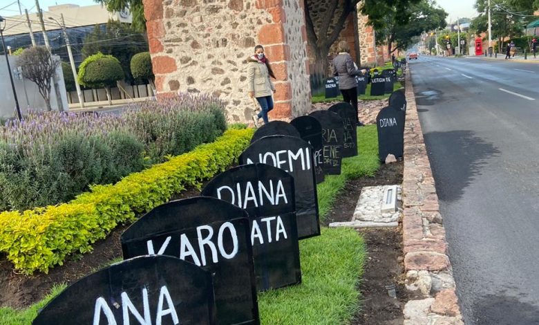 Este lunes fueron colocadas 500 lápidas en los arcos con el objetivo de recordar a las mujeres que ya no están y que fueron asesinadas.