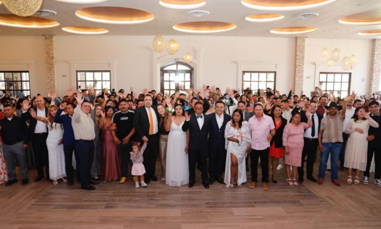 El matrimonio colectivo reunió a parejas provenientes de distintas localidades del municipio, quienes acudieron acompañadas de familiares y amistades.