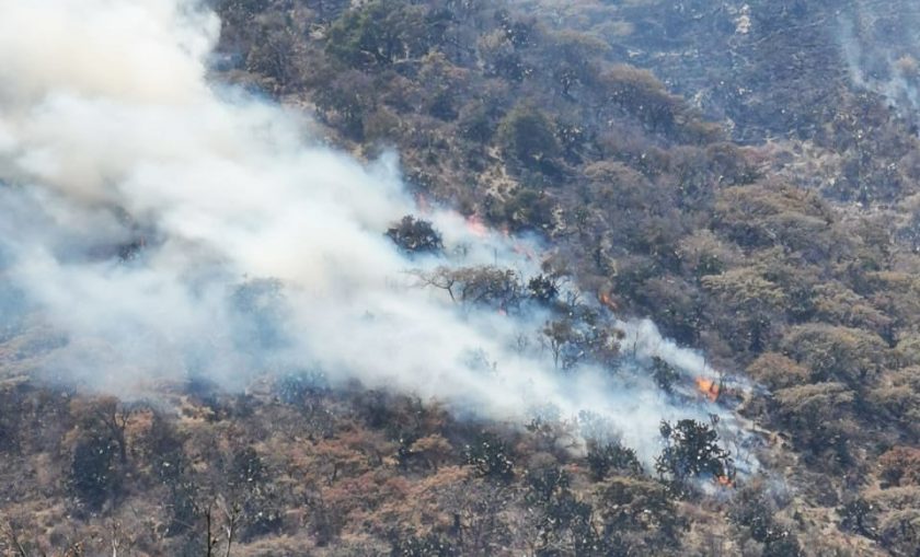 Desde el domingo personal de las secretarías de Desarrollo Agropecuario, Protección Civil combate un incendio forestal en Humilpan, cercano a las comunidades de El Granjeno y La Monja.