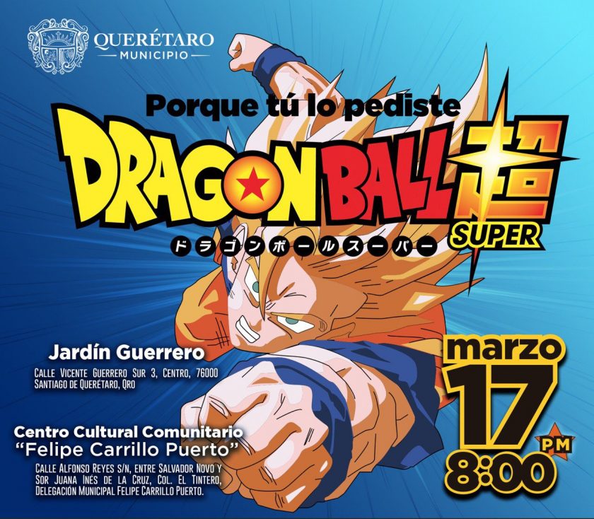 Tras cumplir con los requisitos de la compañía productora, el presidente municipal de Querétaro, Marcos Aguilar Vega, confirmó la proyección del capítulo 130 de la serie de dibujos animados Dragon Ball Super.