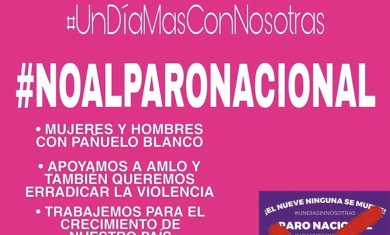 La imagen va acompañada de los “hashtags” #noalparonacional y #undíamasconnosotras,