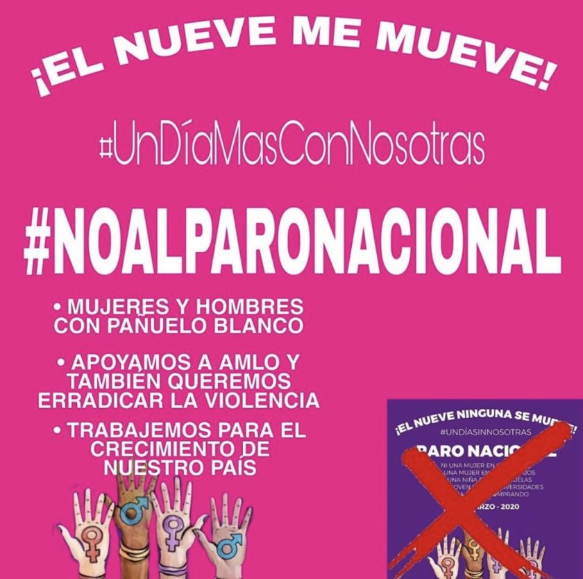 La imagen va acompañada de los “hashtags” #noalparonacional y #undíamasconnosotras,