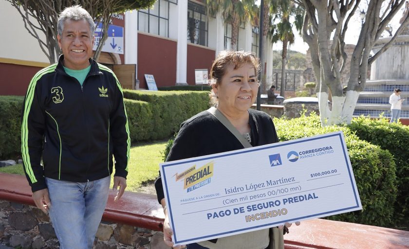 El presidente municipal de Corregidora, Roberto Sosa Pichardo, hizo entrega del primer cheque de indemnización por el seguro de vivienda a una familia de la colonia Las Flores que sufrió el incendio de su vivienda, y que por haber pagado a tiempo su impuesto predial anualizado, fueron acreedores al beneficio del seguro.