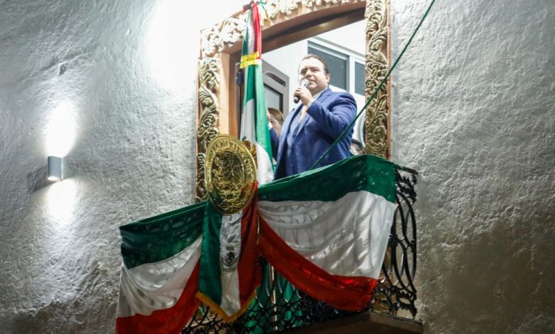 Desde el balcón del Palacio Municipal, el Alcalde acompañado de su esposa Elena Arreguín de la Torre, recordó a los personajes históricos, fundamentales en la lucha por la Independencia de México y que fueron testimonio del cambio en la nueva historia de la Nación.