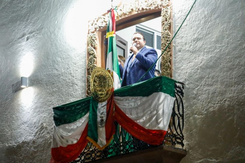 Desde el balcón del Palacio Municipal, el Alcalde acompañado de su esposa Elena Arreguín de la Torre, recordó a los personajes históricos, fundamentales en la lucha por la Independencia de México y que fueron testimonio del cambio en la nueva historia de la Nación.