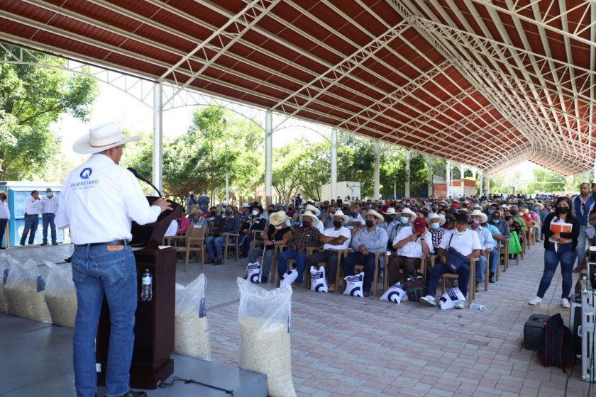 A nombre de todos los productores beneficiarios del municipio de Querétaro, el agricultor Melesio Moya, agradeció a gobierno del estado por el apoyo, al señalar que han tenido que comprar maíz para su consumo diario con el cual alimentan a sus familias.