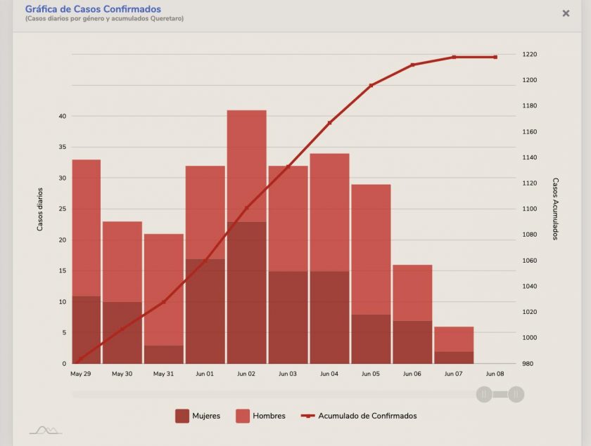 El pasado 5 de junio el gobierno queretano reportó 1,214 casos confirmados y 152 personas fallecidas, cifras similares pero no iguálales a las difundidas anoche por el gobierno federal.