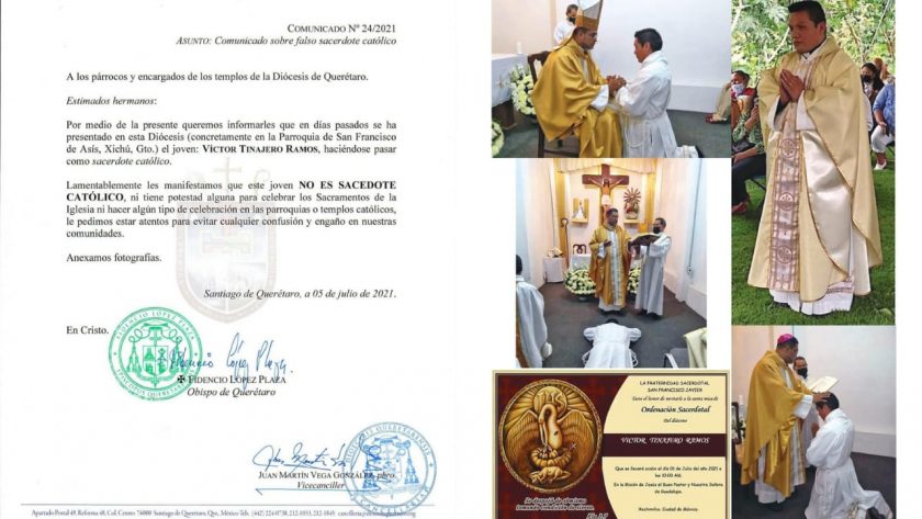 Precisó que el hombre identificado por la iglesia como Víctor Tinajero Ramos “no es sacerdote católico ni tiene potestad para celebrar los sacramentos de la iglesia, ni hacer algún tipo de celebración en las parroquias o templos católicos” y pidió estar atentos para evitar cualquier confusión y engaño en las comunidades.