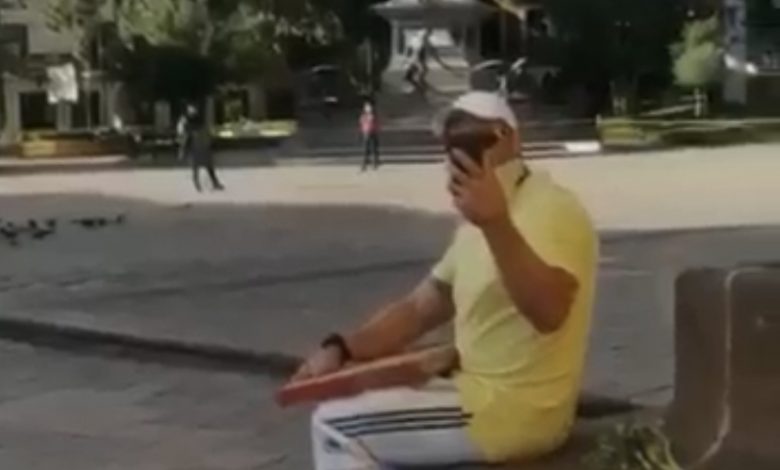 Circula en redes sociales la agresión a personal que labora como vigilante ciudadano en la zona centro de la capital, en el video se observa a una persona del sexo masculino, sentado en una de las bancas del jardín Corregidora, donde después de quitar los cordones, se sentó para esperar y después consumir su pizza.