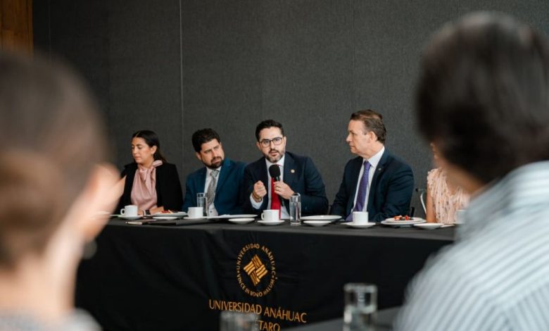 El senador Agustín Dorantes Lámbarri llamó a la ciudadanía, en especial a las y los jóvenes, a involucrarse en los asuntos públicos, durante un encuentro con directivos y estudiantes de la Universidad Anáhuac, campus Querétaro, realizado el 17 de abril en El Marqués.