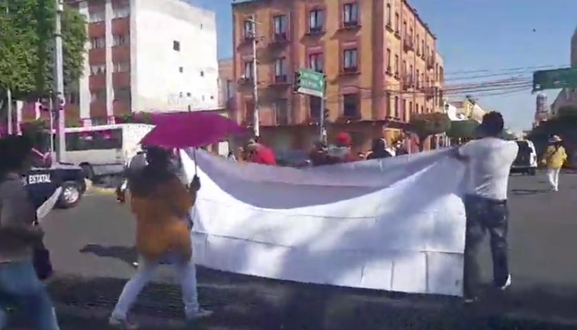 Sin tapabocas y sin cumplir por completo las distancias recomendados, los contingentes marcharon por la céntrica Av. Corregidora de la capital de Querétaro.