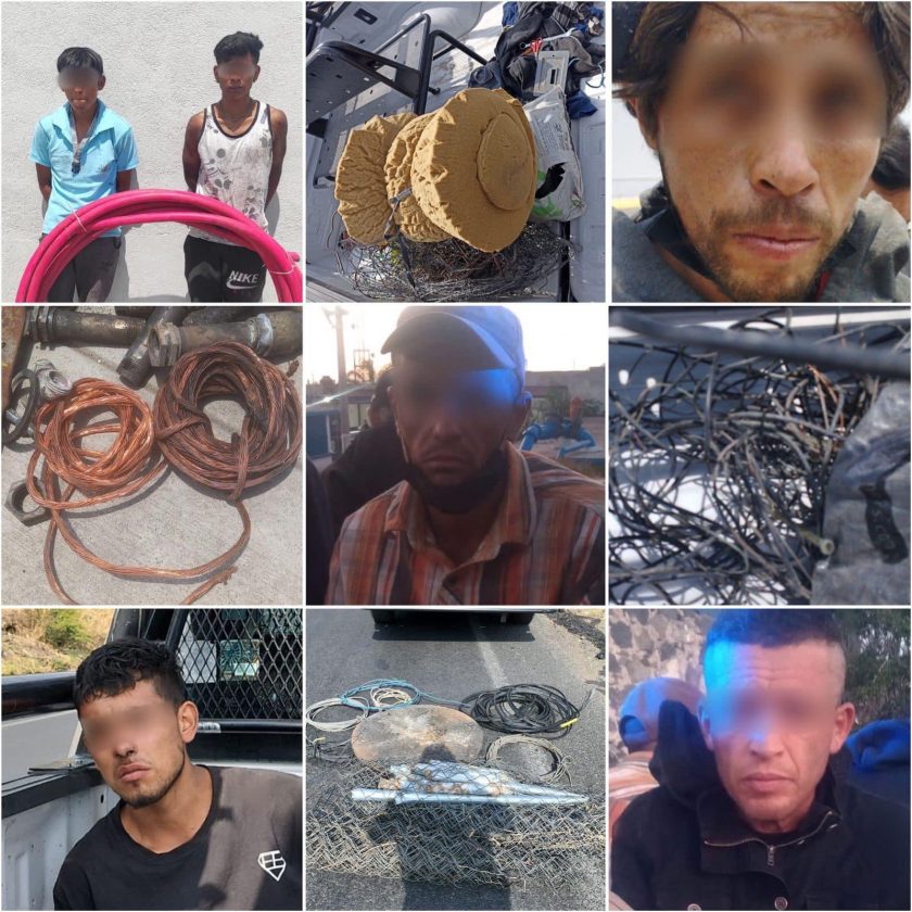 En el último mes, elementos de Policía Estatal detuvieron a 18 personas por los delitos de daños y robo, relacionados a la extracción de cable y alcantarillado, en diferentes colonias y municipios.