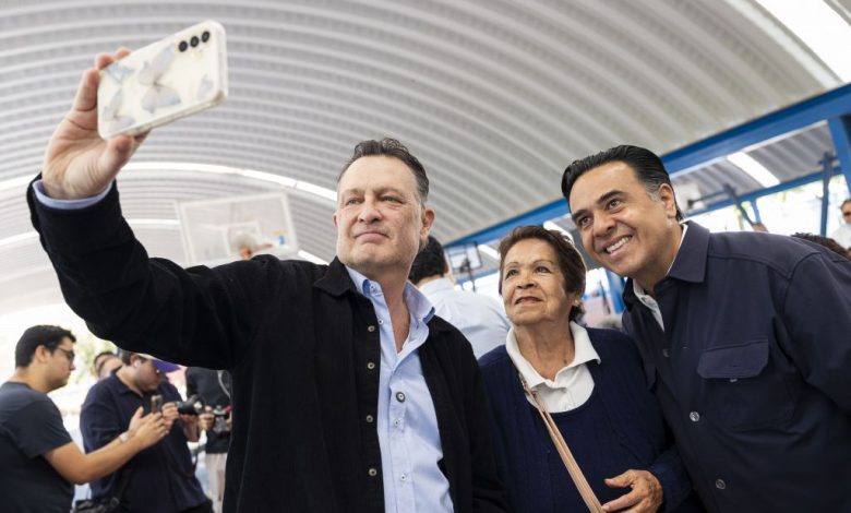 El gobernador de Querétaro, Mauricio Kuri González, encabezó la entrega de canastas alimentarias del programa “Contigo en tu Mesa” en la Unidad Deportiva de El Pueblito, en el municipio de Corregidora, este 11 de abril.
