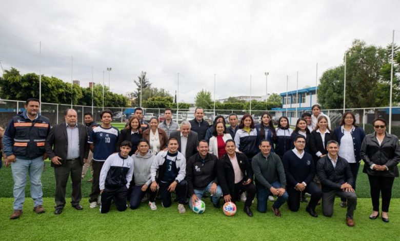 Con el objetivo de fomentar el deporte y la sana convivencia en San Juan del Río, el presidente municipal, Roberto Cabrera Valencia, en compañía de integrantes del Ayuntamiento y Gabinete de la demarcación, entregó la cancha de fútbol 7 en la Centenaria y Benemérita Escuela Normal del Estado de Querétaro “Andrés Balvanera” la cual representó una inversión de 2. 9millones de pesos en beneficio de más de 575 alumnas y alumnos.