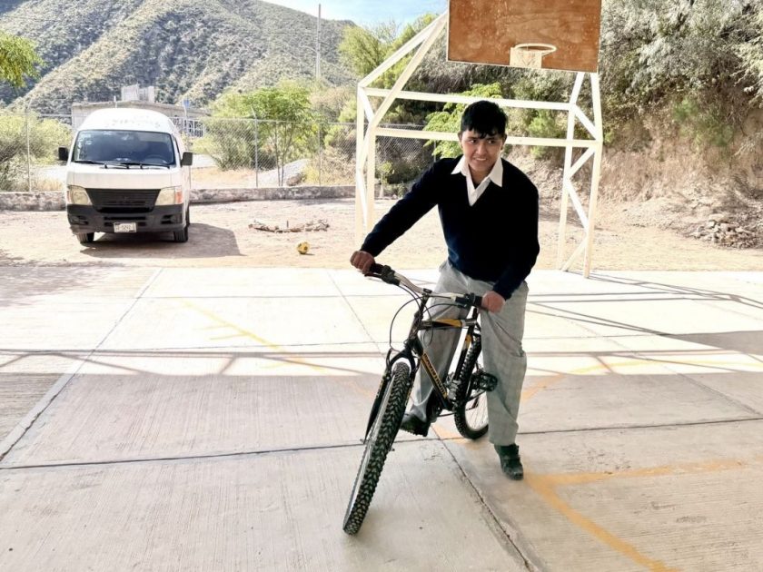 La coordinadora general de la Unidad de Servicios para la Educación Básica en el Estado de Querétaro (USEBEQ), Irene Quintanar Mejía, encabezó la entrega de 66 bicicletas a estudiantes de siete escuelas de la comunidad de El Frontoncillo, en el municipio de Peñamiller, como parte del programa Ayúdame a llegar.