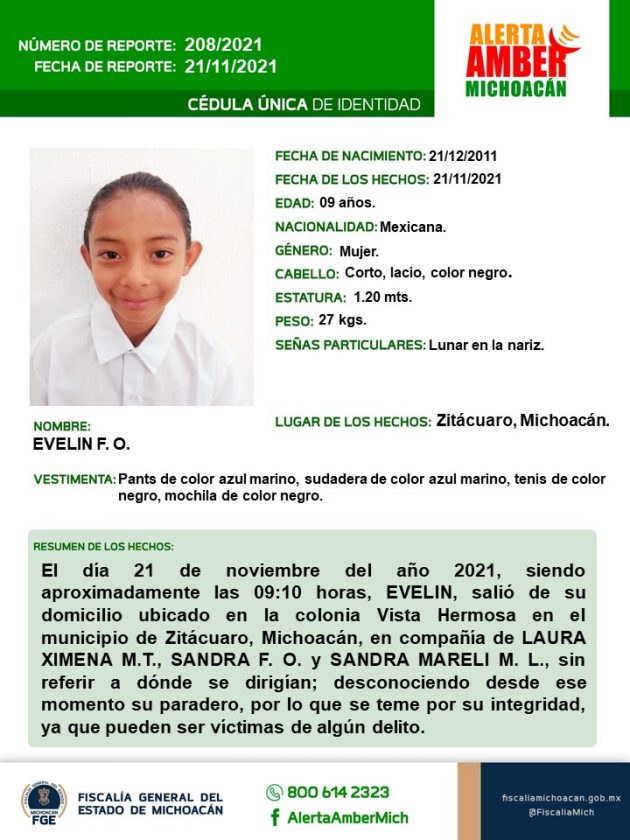 Las autoridades temen por su integridad, por lo que son buscadas en el municipio de Zitácuaro y municipios aledaños, para encontrar a las menores sanas y salvas.