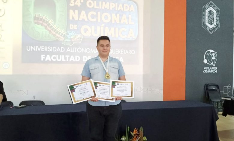 El estudiante Gerardo Yahel Ángeles Reyes, del Colegio de Bachilleres del Estado de Querétaro (COBAQ) plantel 5 Cadereyta, logró la medalla de oro en la XXXIV Olimpiada Nacional de Química, celebrada del 20 al 23 de febrero en la Facultad de Química de la Universidad Autónoma de Querétaro (UAQ).