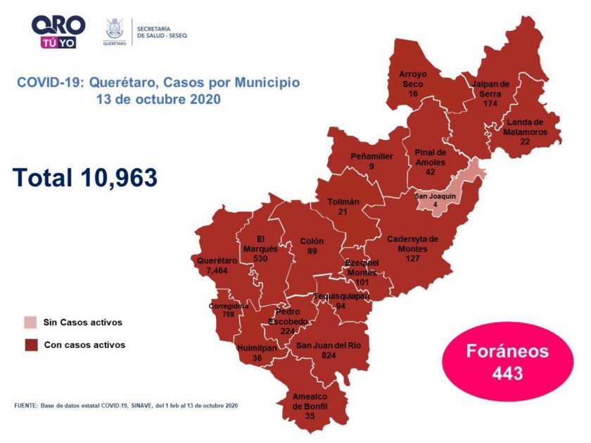 En la entidad se tiene un registro acumulado de diez mil 963 casos de COVID-19; 46% son mujeres y 54% son hombres.