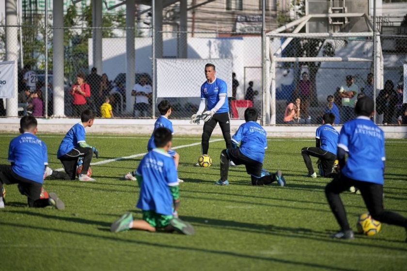 El presidente municipal de Querétaro, Felifer Macías, acompañó a 75 niñas y niños en la primera clínica de fútbol organizada en la Unidad Deportiva San Pablo, donde participaron figuras reconocidas como Aquivaldo Mosquera, Wilder Mosquera, Gabriel Farfán Stopani y el invitado especial, Adolfo Ríos García.