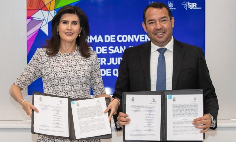 Con el propósito de agilizar los procedimientos y tramitología, el presidente municipal de San Juan del Río, Roberto Cabrera Valencia, y la magistrada presidenta del Tribunal Superior de Justicia, Mariela Ponce Villa, firmaron un convenio de colaboración.