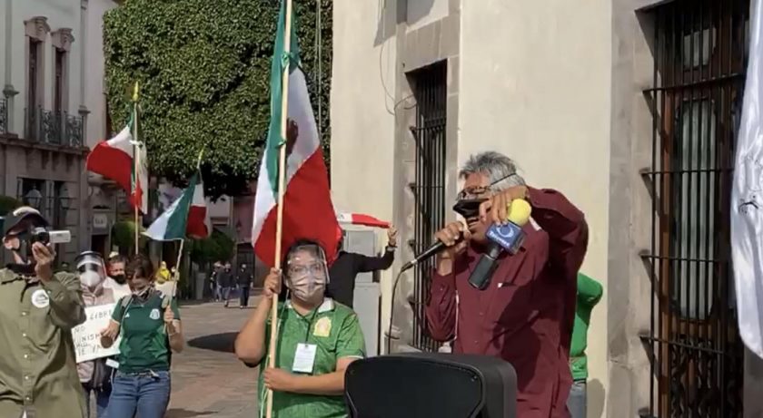 Así se dio el incidente entre quien tomó el micrófono y convocó a sus integrantes del movimiento Anti Amlo, a retirar a medios de comunicación de Plaza de Armas.