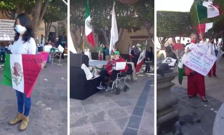 Simpatizantes del Frente Nacional Anti AMLO se manifestaron este domingo en el Jardín Guerrero de la ciudad de Querétaro.