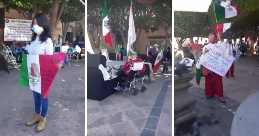 Simpatizantes del Frente Nacional Anti AMLO se manifestaron este domingo en el Jardín Guerrero de la ciudad de Querétaro.