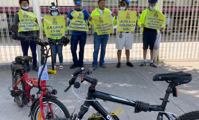 la UCIQ hizo presencia en las inmediaciones del Instituto Queretano del Transporte, donde buscan ser visibles a todas las dependencias involucradas en la Movilidad en Querétaro “Lo que se busca el día de hoy pues es que de alguna forma seamos más visibles, ya somos visibles los ciclistas organizados, pero queremos que la autoridad vea qué hay una necesidad real en la ciudad, qué hay mucha gente usa la bicicleta como un transporte y que la ciudad no está completamente lista, está iniciando, esta avanzando, poco a poco, pero hace falta mucha educación, hace falta aplicación al reglamente de tránsito municipal y estatal, hace falta que la educación permee desde las escuelas primarias, que llegue a los automovilistas y que haya una cultura de respeto entre todos los que andamos en la vía pública”, manifestó el vocero de la UCIQ.