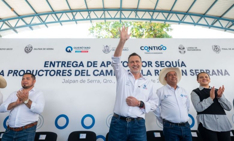 Desde el Teatro del Pueblo de Jalpan de Serra, Kuri González, acompañado del alcalde Rubén Hernández Robles, entregó los apoyos a los pequeños productores, destacando que esta es la tercera ocasión consecutiva en que se otorga este respaldo ante las adversidades climáticas.