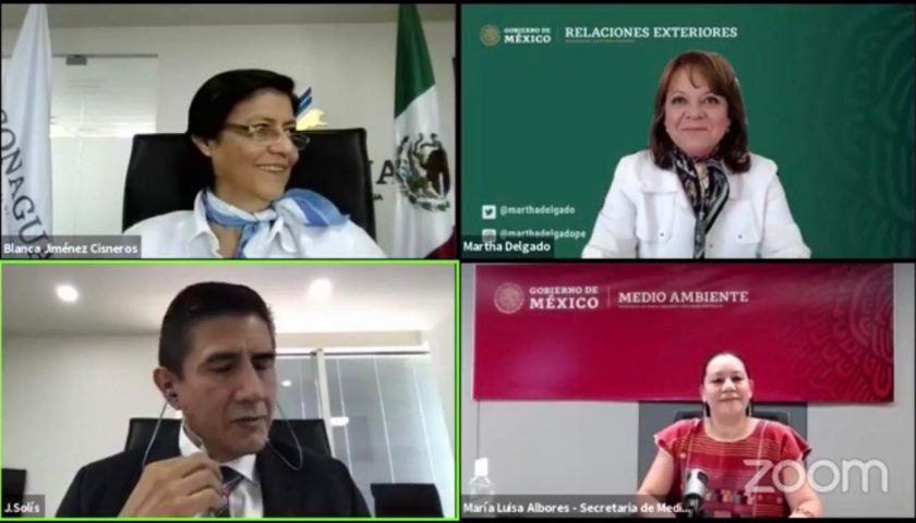 En ello coincidieron la titular de la Secretaría de Medio Ambiente y Recursos Naturales (Semarnat), María Luisa Albores; la Subsecretaria para Asuntos Multilaterales y Derechos Humanos de la Secretaría de Relaciones Exteriores, Martha Delgado, y la Directora General de la Comisión Nacional del Agua (Conagua), Blanca Jiménez, al participar en una mesa de diálogo por el Día Mundial del Agua titulado «La gestión hídrica rumbo al cumplimiento de los ODS».