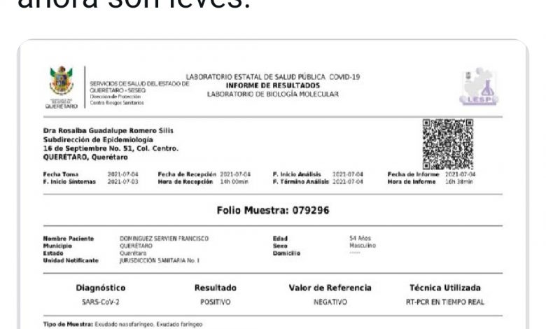 Domínguez Servién hizo el anuncio a través de sus redes sociales, en las que mostró el resultado a la prueba por el virus SARS-CoV-2.