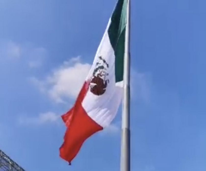 La bandera nacional que habitualmente ondea en el Periférico de la Ciudad de México, a la altura de San Jerónimo, fue izada este día de cabeza.